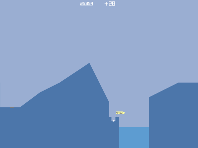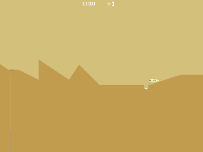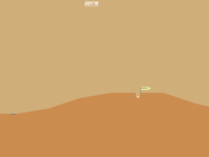 Is Desert Golfing a good game? I’m not sure. It’s certainly a frustrating game. From the physics which make the golf ball bounce just a little too far to the holes designed to infuriate you by making the ball roll just off the screen, the game seems determined to annoy you. On the other hand, it’s not cruel about it – there’s really no pressure to continue, and any goals are really ones you set yourself. This separates it from games like Getting Over It or The Impossible Game, where either the game taunts you (in the former case) or requires such precision that memorizing a sequence of inputs is the only path forward (in the latter case).